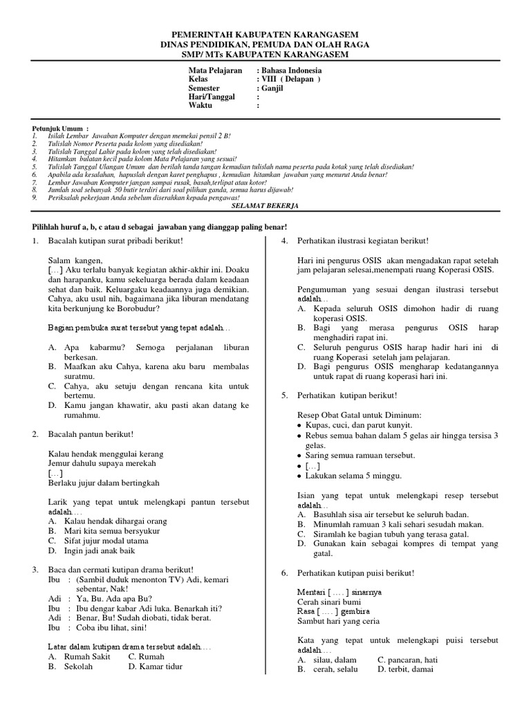 Contoh Soal Pas Kelas 8 Semester 1 Bahasa Indonesia ...